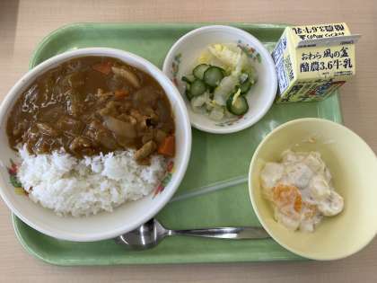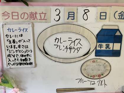 給食メニューと放送室 公開日 2024/03/08 更新日 2024/03/08 日々の活動から 給食メニューです。 ごはん 牛乳 カレーライス フレンチサラダ フルーツヨーグルト 放送当番の様子です。本来は3年生が担当する曜日でしたが、下級生がピンチヒッターを快く引き受けてくれていました。