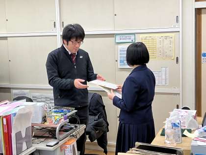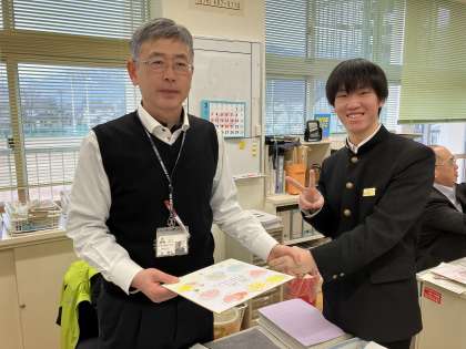 生徒が一言ずつ言葉を述べて、メッセージを渡していました。