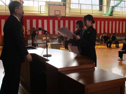 県中体連表彰、県中文連表彰、修了証の授与の様子です。