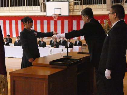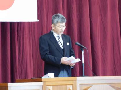 最後の生徒に卒業証書が渡されました。 その後校長の式辞、PTA会長の祝辞と続きました。