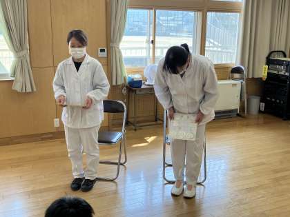 6時間目の授業の様子 2 公開日 2024/03/15 更新日 2024/03/15 日々の活動から 1・2年生が調理員さんに向けて書いた言葉の紹介がありました。 3年生からのメッセージも渡されました。 小林さんからのメッセージもいただきました。 これまでおいしい給食をたくさん作っていただきありがとうございました。これからもおいしい給食を作ってください。お願いします。