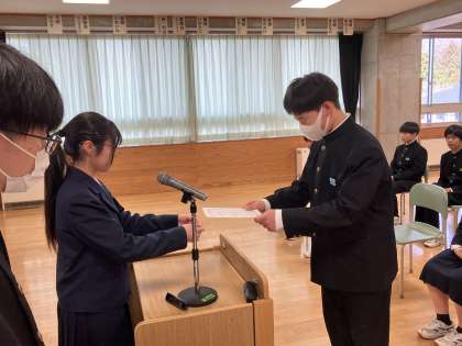 各種受賞伝達がありました。 家庭学習時間 100分以上達成者 読書達成 1年間15冊以上達成者