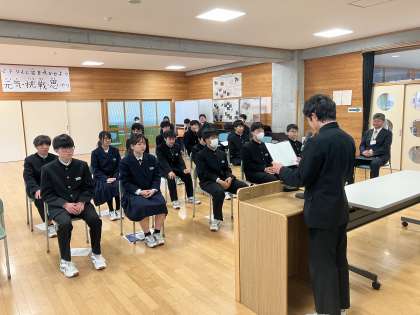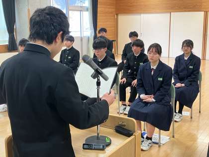 意見発表の様子です。 学習時間を増やし、部の練習を大切にしたいというような内容でした。