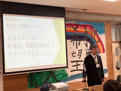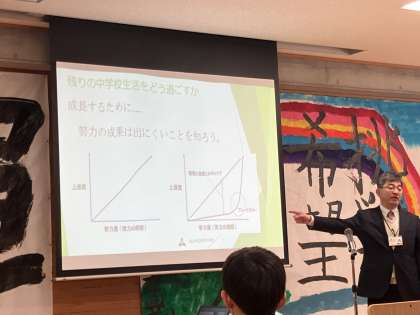 式辞の中で「努力の結果は、なかなか見えにくいが、よさを見付け、伸ばし続けましょう」という内容でした。