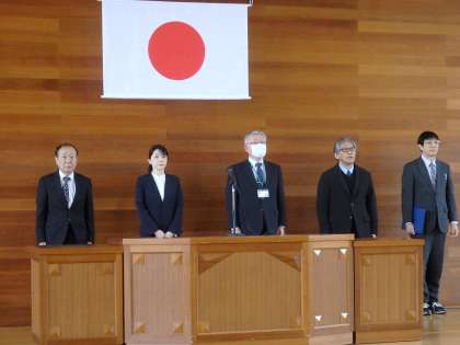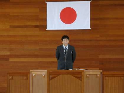 始業式では校長が式辞を述べた後で、校歌を歌いました。