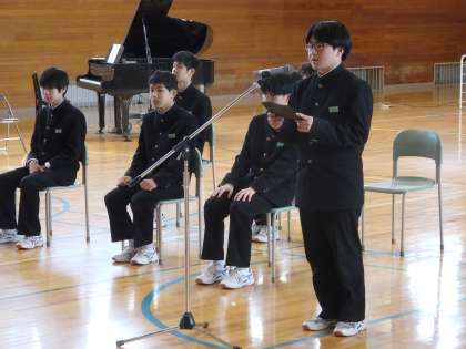 着任者を代表して校長が挨拶をしました。生徒代表が歓迎の言葉を述べました。