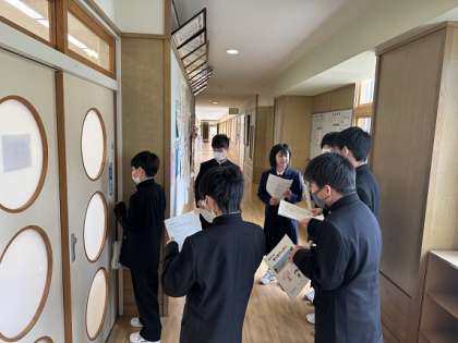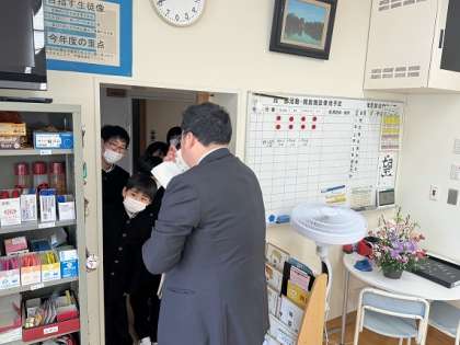 1学年 校舎探検の様子 公開日 2024/04/08 更新日 2024/04/08 日々の活動から 1年生は、校舎探検をして教室の場所を確認しています。 職員室では、部室の鍵の借り方や入室の仕方を練習しました。
