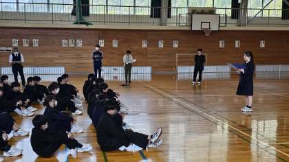 部活動入会式 公開日 2024/04/17 更新日 2024/04/17 日々の活動から 部活動入会式が行われました。 生徒代表からの挨拶と部活動担当の挨拶がありました。 今日から1年から3年まで揃っての部活動です。 がんばりましょう!!