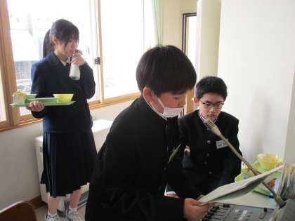 4月18日(木)本日の給食 公開日 2024/04/18 更新日 2024/04/18 日々の活動から 本日の給食です。 今日から生活実践部の放送当番がスタートしました。先輩達に見守られながら、丁寧に1年生が放送原稿を読み上げていました。聞き取りやすかったと太鼓判も押されています!