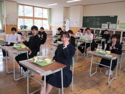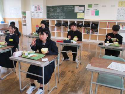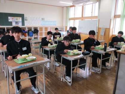 各学級での様子です。どの学級でも楽しく給食を食べています。