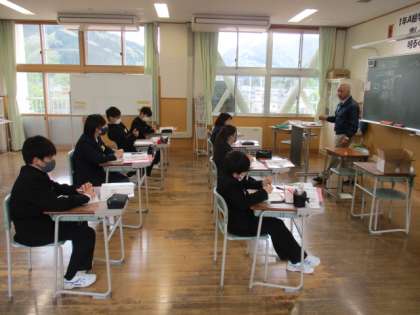 1、2年生は技術や家庭の授業をしていました。 週1回の授業なので真剣に聞いていました。