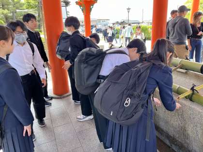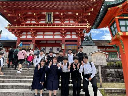 5月8日(水)修学旅行 その2 公開日 2024/05/08 更新日 2024/05/08 日々の活動から 3年生は京都に着きました。 現地は天気がいいようですね。 伏見稲荷神社で記念写真をとりました。