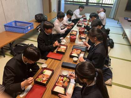 宿舎に戻り、昼食のハンバーグ弁当を食べました。