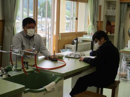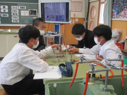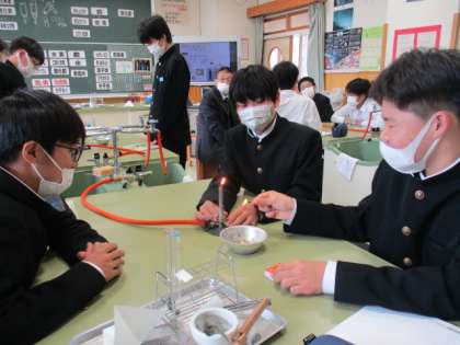 2年生では理科で、硫黄と鉄の反応についての理科実験をしました。