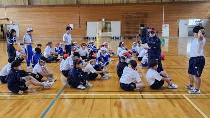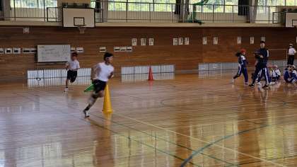 走順やバトンパスの仕方などの確認をして、バトンパスの練習をしました。