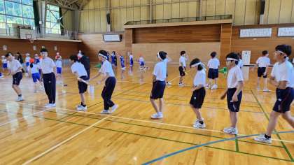 一時間目に小中合同でリレー練習をしました。