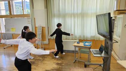 1年生は学活で、来週の体育大会に向けて、ダンスや舞、応援歌の練習をしました。