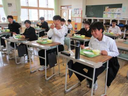 今日の給食の様子です。体育大会まであと4日です。 たくさん食べて体力をつけましょう!