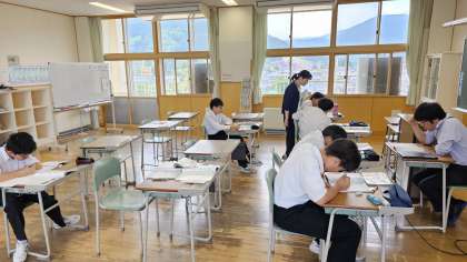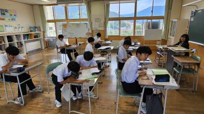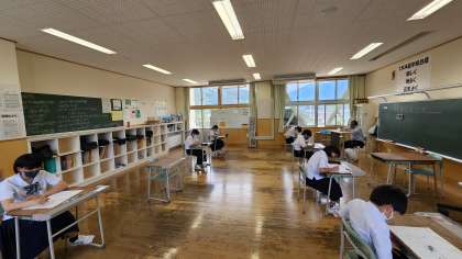 1年生は数学で小テストをしていました。