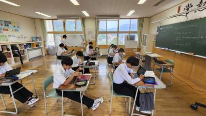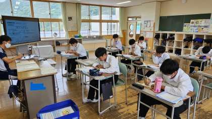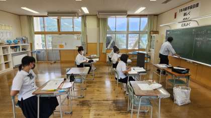 1年生は数学で『文字式のルールを身に付けよう』、2年生は保健体育で『生活習慣病とがんの予防』、3年生は英語で『Photo haikuを詠もう』で、夏をテーマにして、英語で俳句を詠むようです。タブレットを使って、調べていました。私は夏といったらかき氷ですね。何をイメージしているのか、発表が楽しみですね!