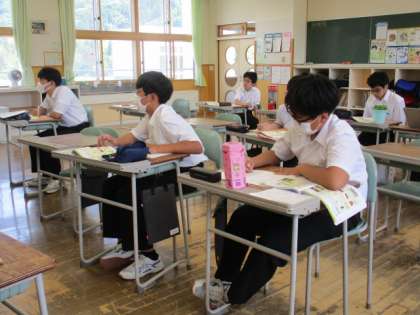 3年生は国語で「作られた物語を超えて」について、グループワークをしながら学んでました。