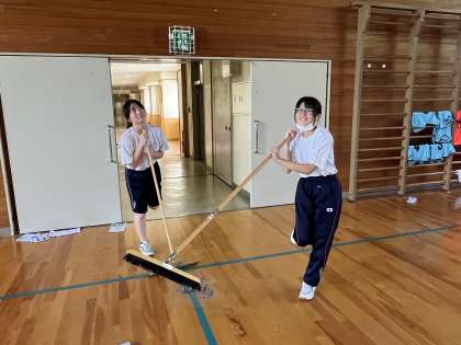 6月13日(木)小中合同ボランティア清掃 1 公開日 2024/06/13 更新日 2024/06/13 日々の活動から 校内清掃の様子です。 今年度は学校付近でのクマの出没があったため、楡原駅での清掃を校内清掃に変更しました。 いつもはなかなかできない音楽室や体育館倉庫、格技場を細かいところまで小学生と協力して掃除することができました。