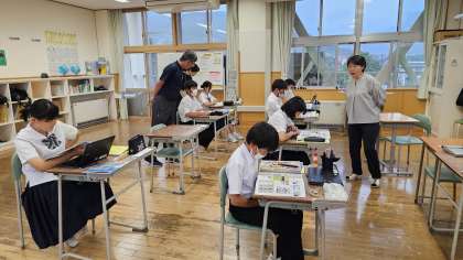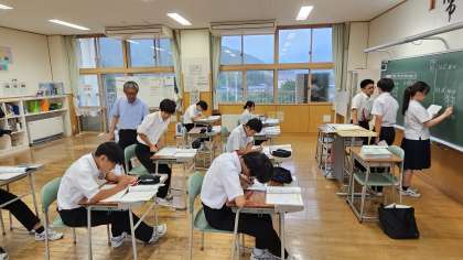 1年生は美術で『漢字の感字』、2年生は保健体育のバスケットボールで『味方へ正確にパスを出そう』、3年生は数学で『二次方程式』でした。美術では、漢字の一部を絵に変えて表現します。楽しそうです。