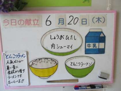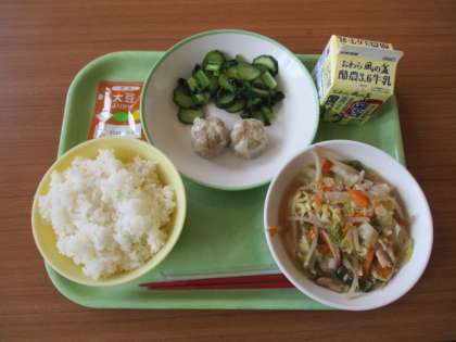 とんこつラーメン、ごはん、シューマイと炭水化物祭りでしたが、野菜やお肉も多く、全体的にボリューミーな給食でした。