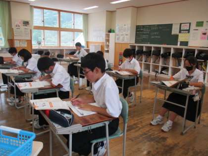 1年生は理科で「金属の見分け方」、3年生は数学で計算をがんばっていました。