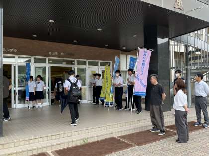 多くの保護者の方や生徒が、登校してきた児童生徒に元気に挨拶をしていました。