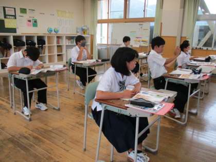 1学年は技術で「木材加工技術」で木材の性質、2学年は発表に向けたスライド作り、3学年はバドミントンのトピックスを理解しようでした。