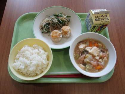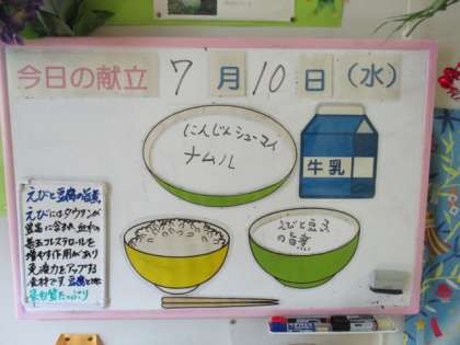 ナムルとごはん、にんじんシューマイ、エビと豆腐のうま煮とどれもごはんがたりないくらいおいしいメニューでした。