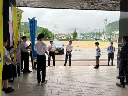 7月11日(木)PTAさわやか挨拶運動 公開日 2024/07/11 更新日 2024/07/11 日々の活動から 本日、さわやか挨拶運動最終日でした。 最後に生徒会長が話をしました。 2日間、天候が悪い中、参加していただきありがとうございました。