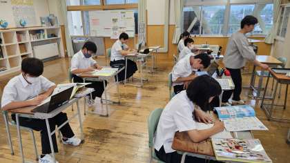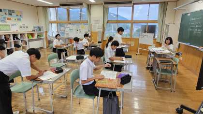 1年生は美術で『感じの漢字』をしていました。なかなかいいアイデアの作品ができています!