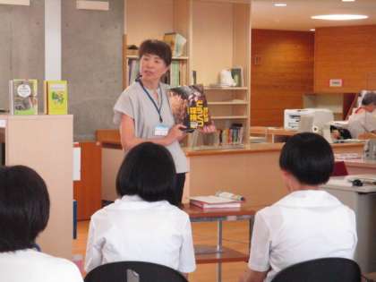 読書強化週間として、図書館で司書さんによるブックトークを行いました。今日は1年生対象で、テーマは「働くこと」。小説や体験記、絵本など、様々なジャンルの本が紹介されました。この機会に、ぜひ本に親しんでください。