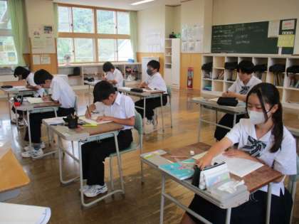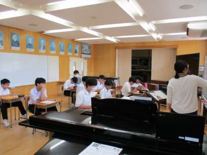 1学年は数学で「方程式の意味を理解しよう」、2学年は音楽で「曲の構成を理解しよう」、3学年は英語で「説得力のある意見の書き方について考えよう」について学んでました。