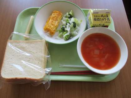 ミネストローネは野菜たっぷりで、たまごロールは甘めでとても食パンと合いました!