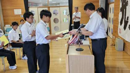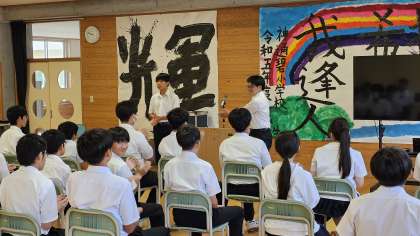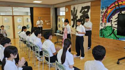 8月27日(火)授賞伝達式 公開日 2024/08/27 更新日 2024/08/27 日々の活動から 授賞伝達式が行われました。 ボート部ダブルスカルの全国制覇の報告が行われました。 3年間の成果がでましたね!おめでとうございます!!