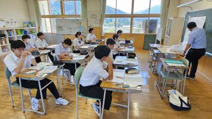 3年生は数学で二次関数、2年生は実習生の保健体育でTボール、1年生は理科で身の回りの気体の性質でした。