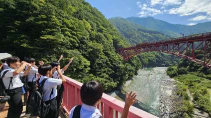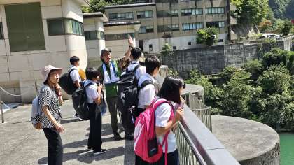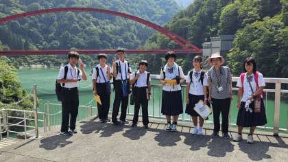 宇奈月ダムに到着しました。途中トロッコ電車に手を振ったりしました。神ニダムよりでかくて驚いていました!