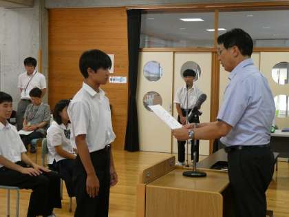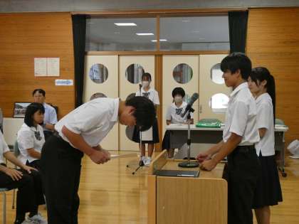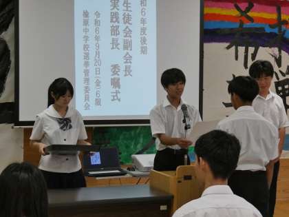 退任式に続いて、新生徒会役員の任命式等が行われました。