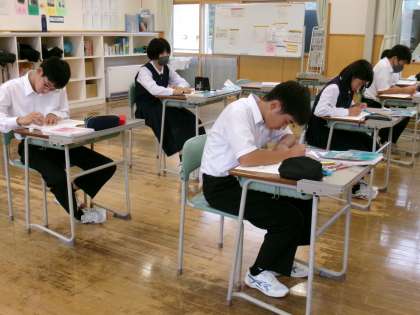 1年生は数学で比例、3年生は高校説明会をしていました。