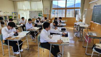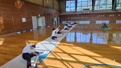 1年生は音楽で合唱パート練習、2年生、碧空級は保健体育で器械体操の倒立前転の練習、3年生は数学で平行線と比の定理でした。
