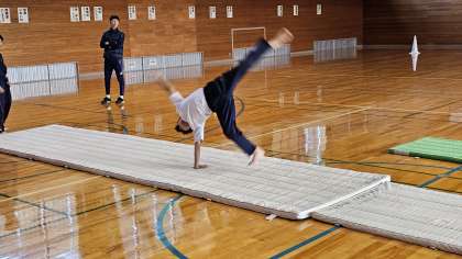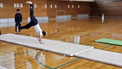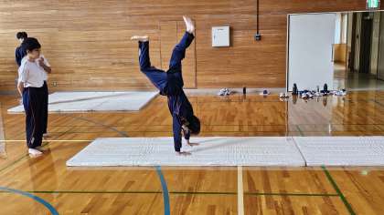 2年生と碧空級は保健体育の発表会に向けてさまざまな技にチャレンジしています!それぞれの考えた複数の技を組み合わせて、演技をします。本番に向けてファイト!!