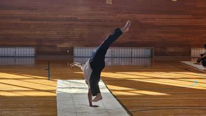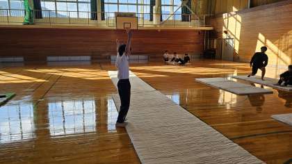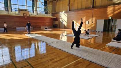 2年生、碧空級はマットの発表会をしました。それぞれの考えた技を披露しました!ダイナミックな技も出てとてもよかったです。