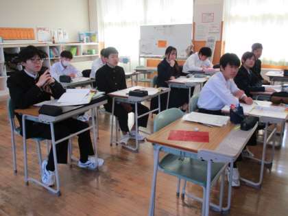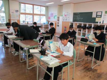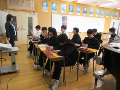 1年生は国語で竹取物語、2年生、碧空級は音楽で曲の構成を知ろう、3年生は英語でした。