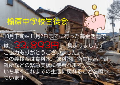 11月15日(金) 能登半島災害募金 活動報告その2 公開日 2024/11/18 更新日 2024/11/18 日々の活動から 生徒会執行部としての活動を終え、教頭先生に報告しました。その後、募金活動を報告するポスターを作成しました。前期から引き継いだ活動もこれでひと段落し、充実した活動を行えた様子が伝わってきました。なお、振込先は以下の通りです。