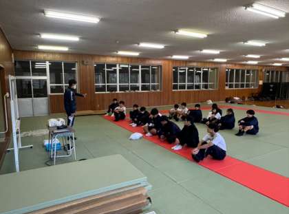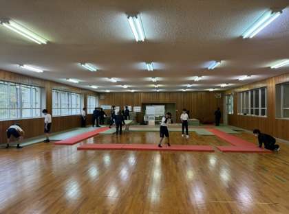 11月19日(火) 1・2年合同体育の様子 公開日 2024/11/19 更新日 2024/11/19 日々の活動から マット運動を終えて、次は柔道の学習です。格技室に畳を敷いて柔道に向けた準備をみんなで行いました。けがのないよう学習に取り組んでいきましょう。
