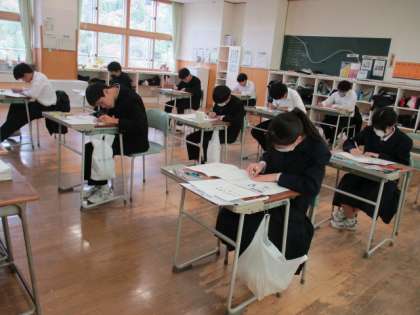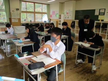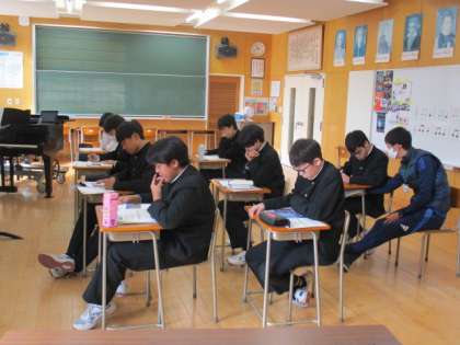 1年生は数学で垂直二等分線、2年生、碧空級は音楽で今までの教科書の内容の確認をしていました。3年生は期末考査でした。