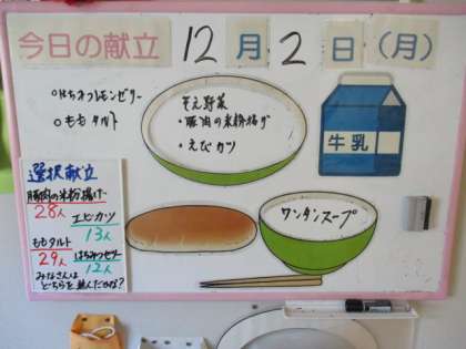 12月になりました。今日の献立は選択献立!!